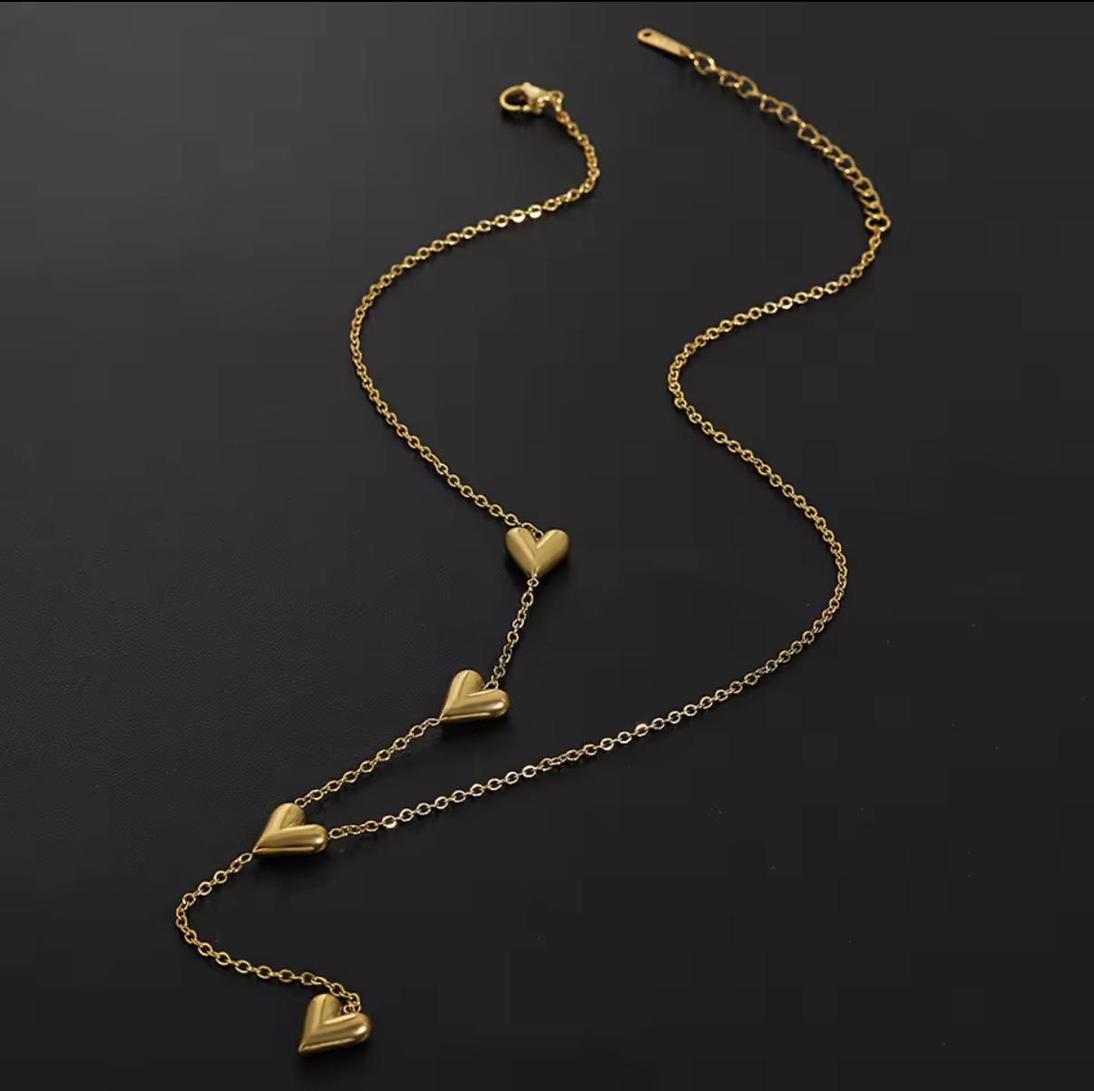 Gold Plated Anti Tarnish Stainless Steel Floating Hearts Necklace